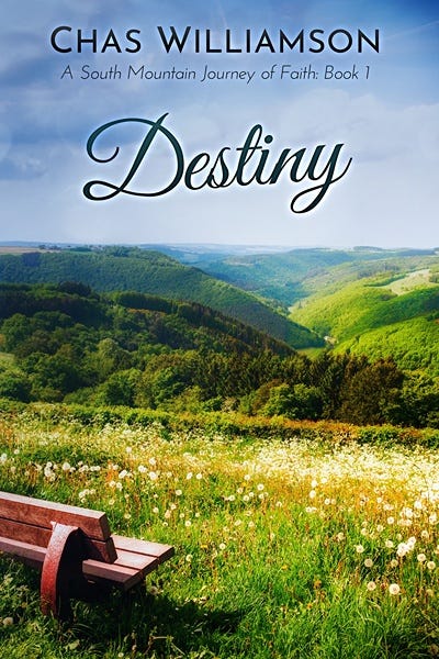 Destiny is the captivating first book in the South Mountain Journey of Faith series. If you like bold characters who seek God’s guidance, small town settings, and joint journeys of healing, then you’ll adore Chas Williamson’s sentimental Christian romance novel.